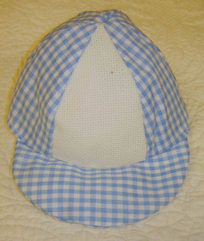 # infant cap with aida cloth insertion for cross stitch or machine embroidery