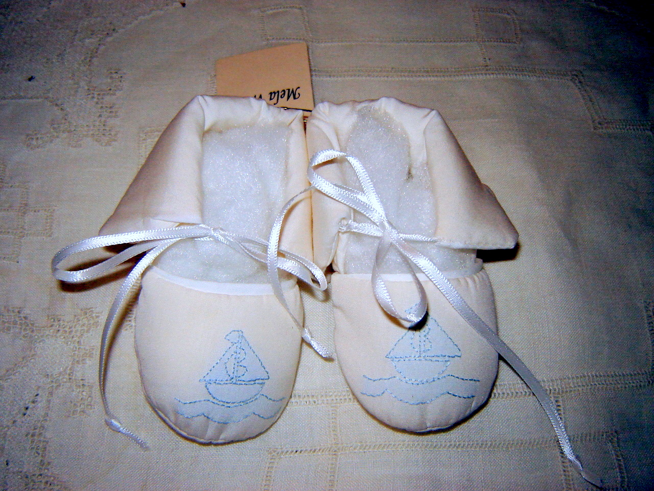 $9 for Mela Wilson shadow embroidered sailboat booties.