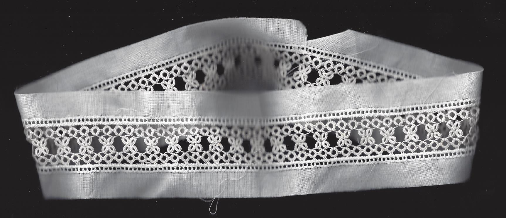UFO headband, 16″ loop of tatted beading with entredeux on either side.